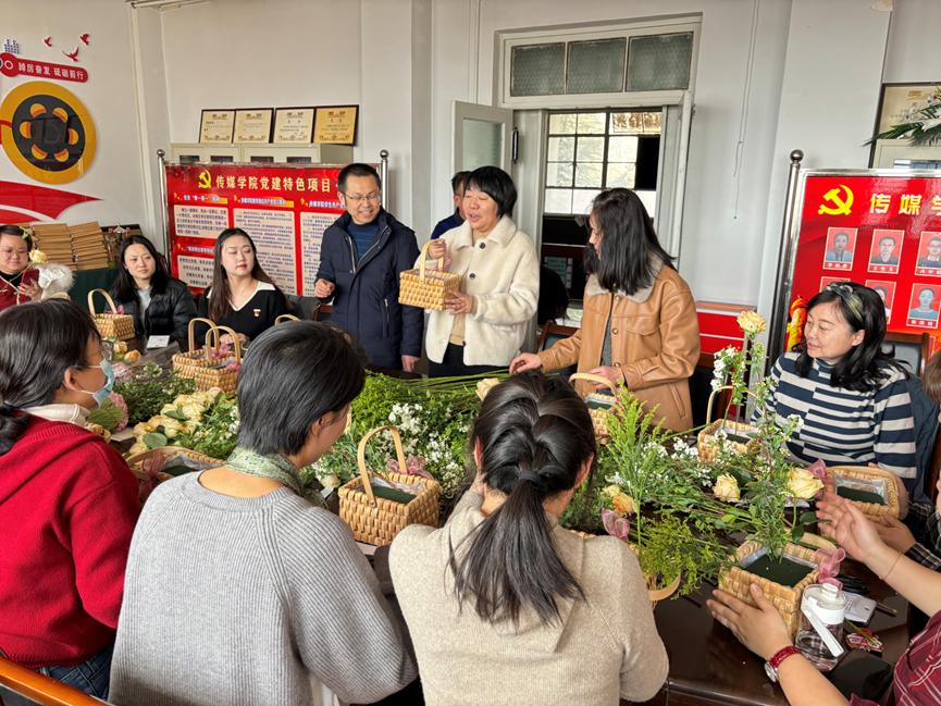 为了庆祝“三八”国际妇女节的到来, 进一步丰富女教工的精神文化生活,带领大家感受花艺文化魅力,提高审美情趣,传媒学院于3月7日下午开展了“情暖三月 花漾生活”主题插花活动。活动邀请了兰州职业技术学院副教授陈霞进行插花指导,学院全体女教工参加了本次活动。