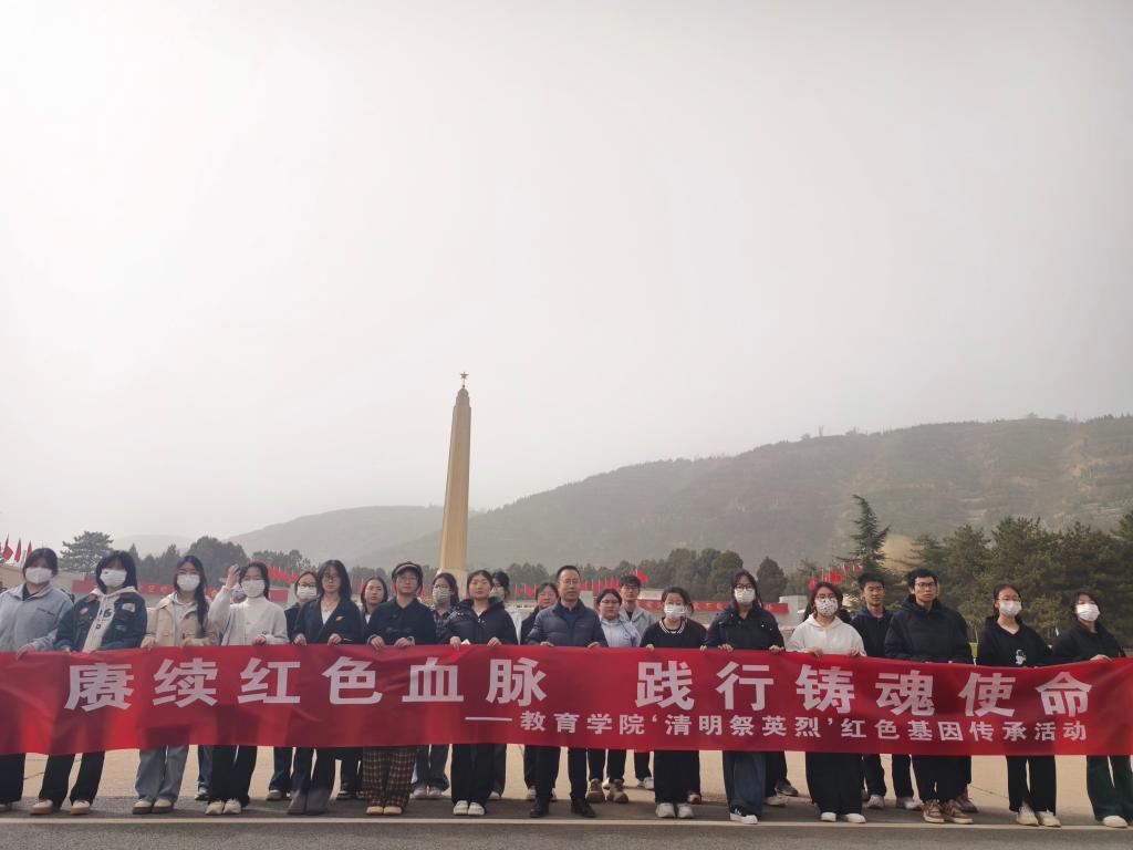 教育学院师生代表开展"赓续红色血脉 践行铸魂使命"主题教育活动。师生们通过敬献鲜花、默哀致敬等仪式缅怀先烈,深切感悟革命先辈为民族解放作出的巨大牺牲,接受了一次深刻的红色精神洗礼,有效增强了师生的历史使命感和爱国情怀。