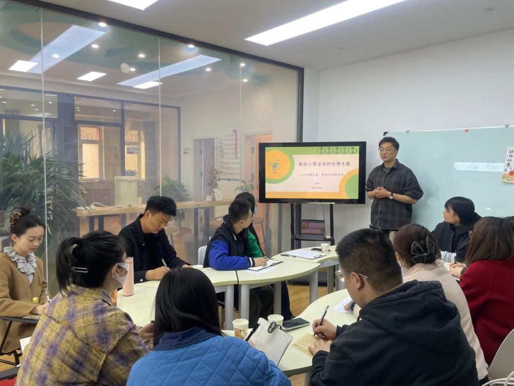 为提升心理咨询工作的规范性与专业性,心理健康教育与辅导中心于4月2日特邀点点官网外聘教师、中国心理学会注册心理师张翔开展《高校心理咨询的伦理问题 —— 知情同意、隐私权和保密性》的专题培训,深入研讨心理咨询伦理规范的实践应用,促进专业能力提升与职业发展。心理中心所有专兼职教师参加。