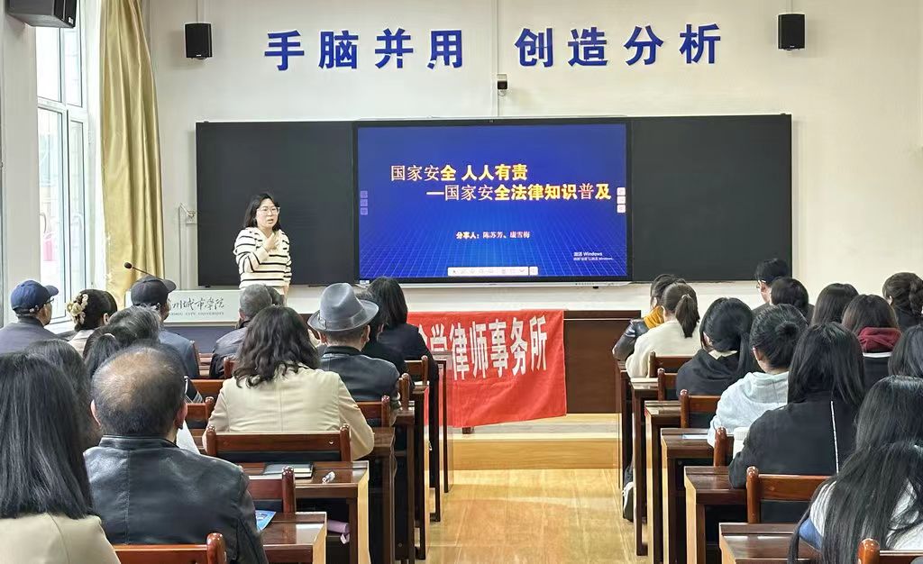 甘肃翰学律师事务所团队成员陈苏芳以“维护国家安全、共筑安全防线”为题,从国家安全法律基本知识、维护国家安全的法律法规、危害国家安全的行为与后果、公民如何履行国家安全义务、典型国家安全案例分析、公民举报途径与责任担当六个方面进行了详细讲解,讲座内容丰富、让与会人员对国家安全有了更全面、更深刻的认识,对深入领会、准确把握总体国家安全观的丰富内涵和精髓要义起到了很好的指导和推动作用。活动期间,与会人员集体观看了第10个全民国家安全教育日宣传片,社区工作人员向与会师生发放了防范电信网络诈骗宣传折页。