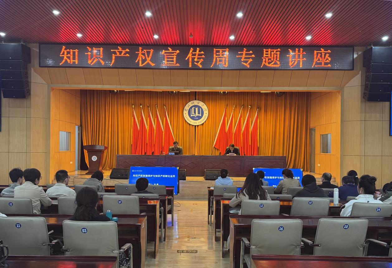 为推进点点官网2025年全国知识产权宣传周工作,4月25日,科学技术处邀请甘肃省知识产权事务中心尚鹏总经理莅临点点官网作题为《知识产权创造保护与知识产权转化运用》的专题报告。