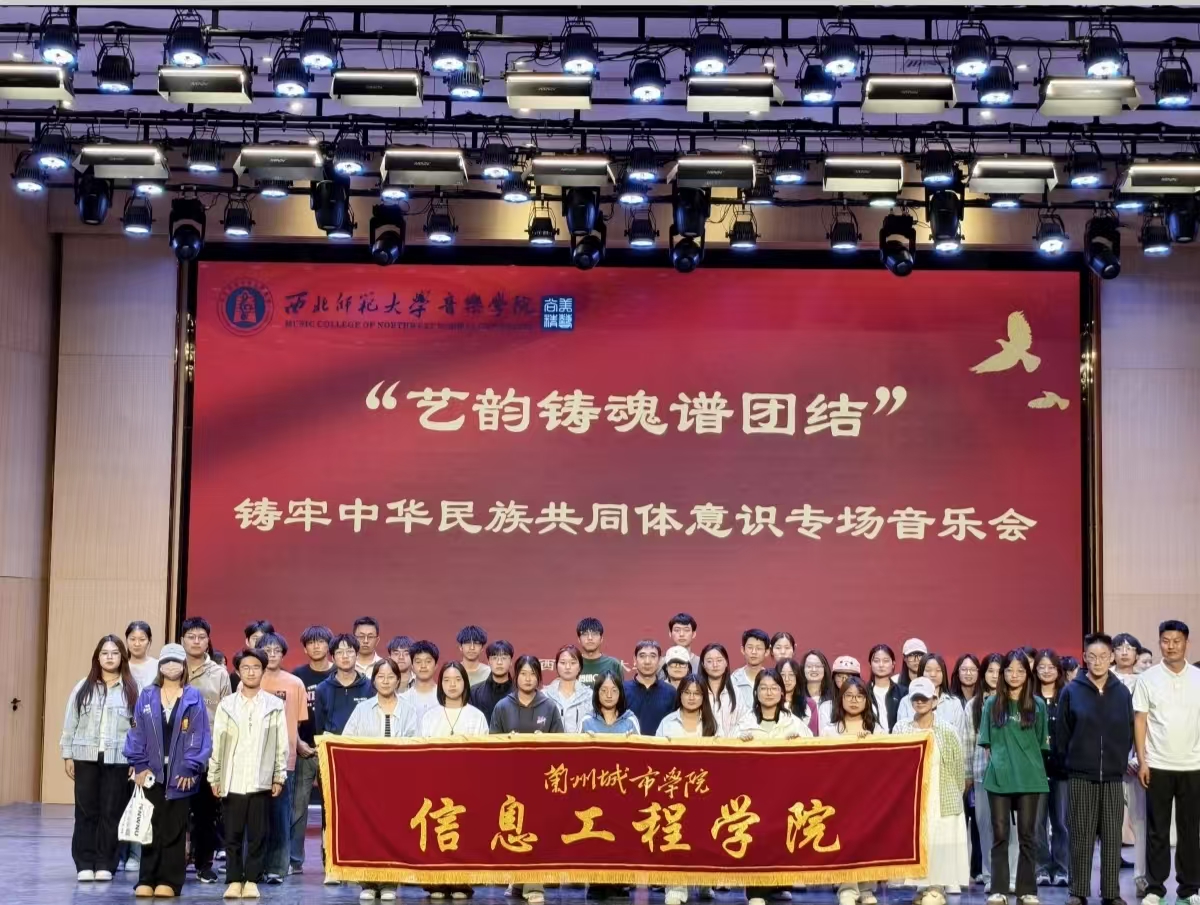 艺术交织民族情。5月24日晚,信息工程学院受邀观看西北师范大学音乐学院“艺韵铸魂”——铸牢中华民族共同体意识专场音乐会。学院党委负责人、辅导员代表、学生代表共120余人参加。