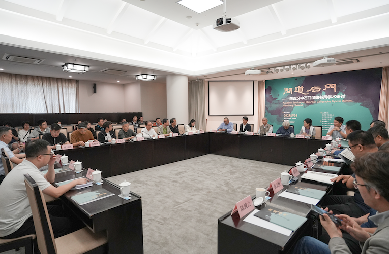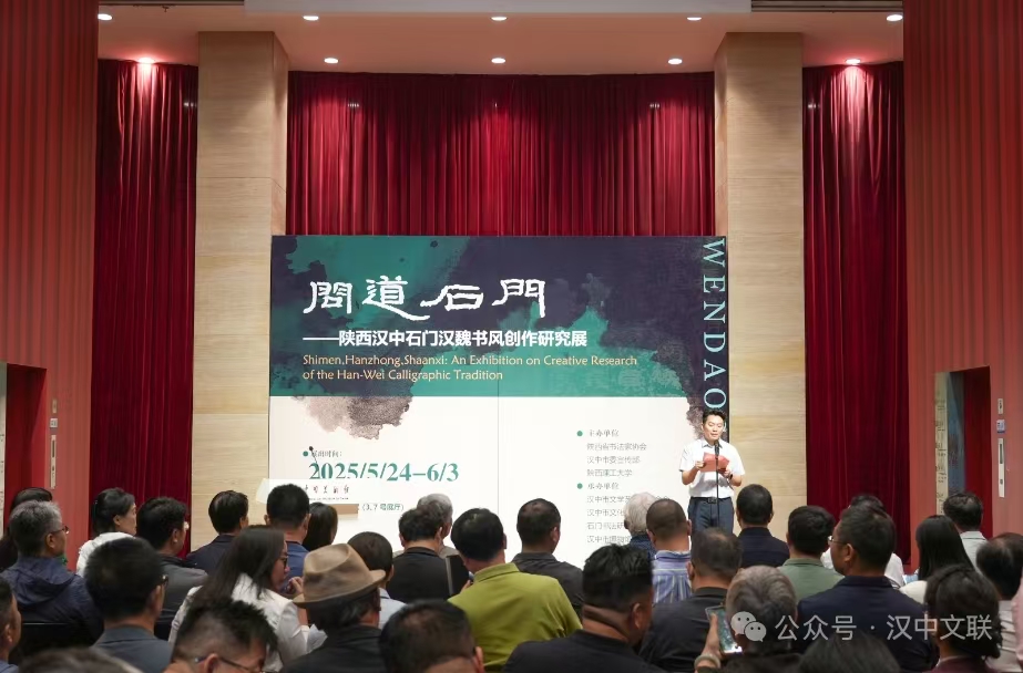 开幕式后,“问道石门——陕西汉中石门汉魏书风学术研讨会”同期举行。研讨会由中国美术学院书法与篆刻系主任张爱国教授主持,全国知名专家学者围绕“石门石刻的文化价值与当代传承”主题展开深入研讨,共同探讨以笔墨艺术激活文物生命力,为中华优秀传统文化的创造性转化与创新性发展注入时代活力。米文佐在研讨会上作了主题发言,分享其研究心得与创作思考。