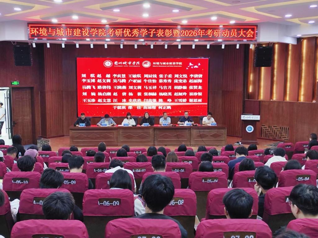 为全面推进学风建设,5月30日下午,环境与城市建设学院在大学生活动中心隆重召开考研优秀学子表彰暨2026年考研动员大会。学院负责人、各系主任、教师代表、2026届全体毕业生参加会议。
