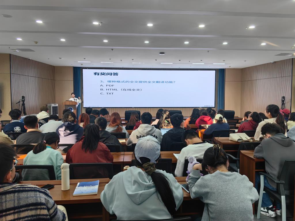 10月15日下午,由图书馆与党委研究生工作部(研究生处)联合主办的“AI时代的外文文献检索:EBSCO高级攻略”专题讲座在图书馆五楼博雅讲堂举行。本次活动特邀EBSCO培训师童诗恩担任主讲,旨在提升研究生信息素养与学术资源利用能力。