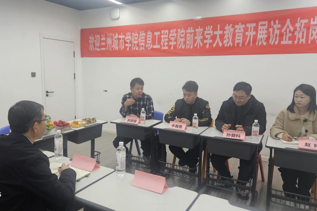 在银川学大教育、宁夏人工智能创新生态产业园、宁夏深维智能科技有限公司,学院负责人介绍了学校办学定位、特色优势以及学院专业设置、师资力量、人才培养和毕业生就业情况。各企业负责人分别介绍了发展现状和用人需求,双方围绕实习实训、就业创业等工作达成合作意向。