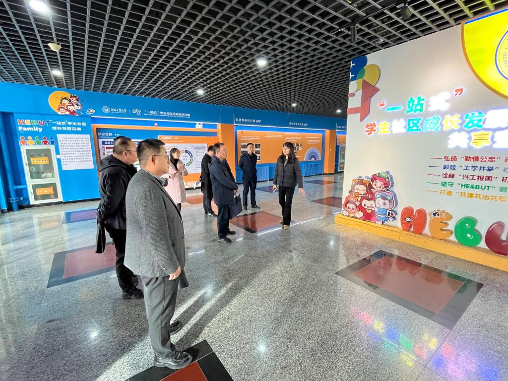 在河北工业大学,调研组走访学生社区党建活动室、学业辅导中心等功能空间,深入了解“书院制”育人模式下学风建设与科创培育的联动机制。该校学工部门系统分享了“三全育人”理念下的科创培育体系、辅导员“双师型”培养机制以及“党建+服务+育人”深度融合的社区建设经验。