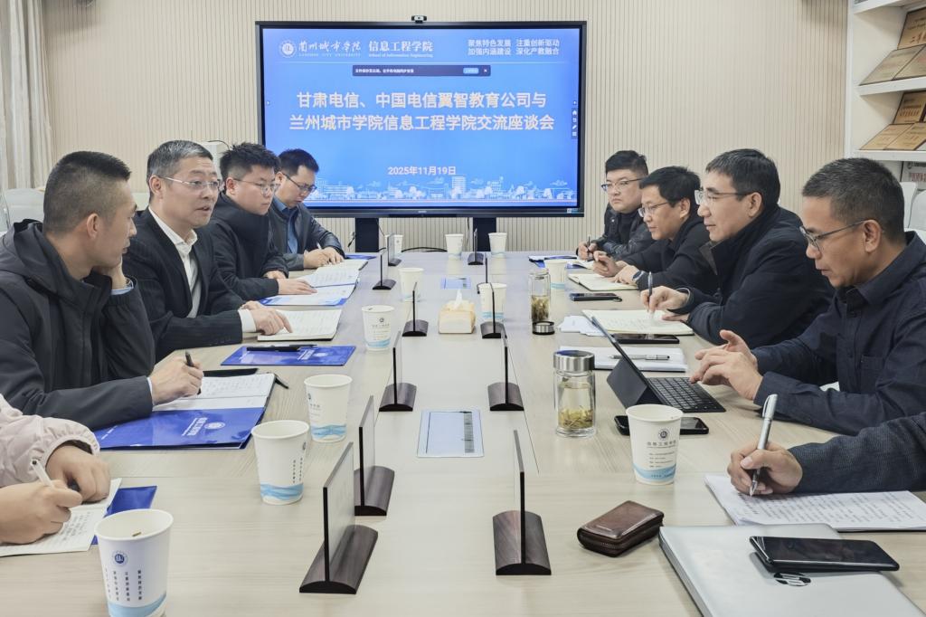 1119日下午,中国电信甘肃分公司科教行业事业部总监杨继隆、翼智教育公司数字教育解决方案部总经理赵君成等一行7人来校,与信息工程学院相关负责人进行座谈交流。