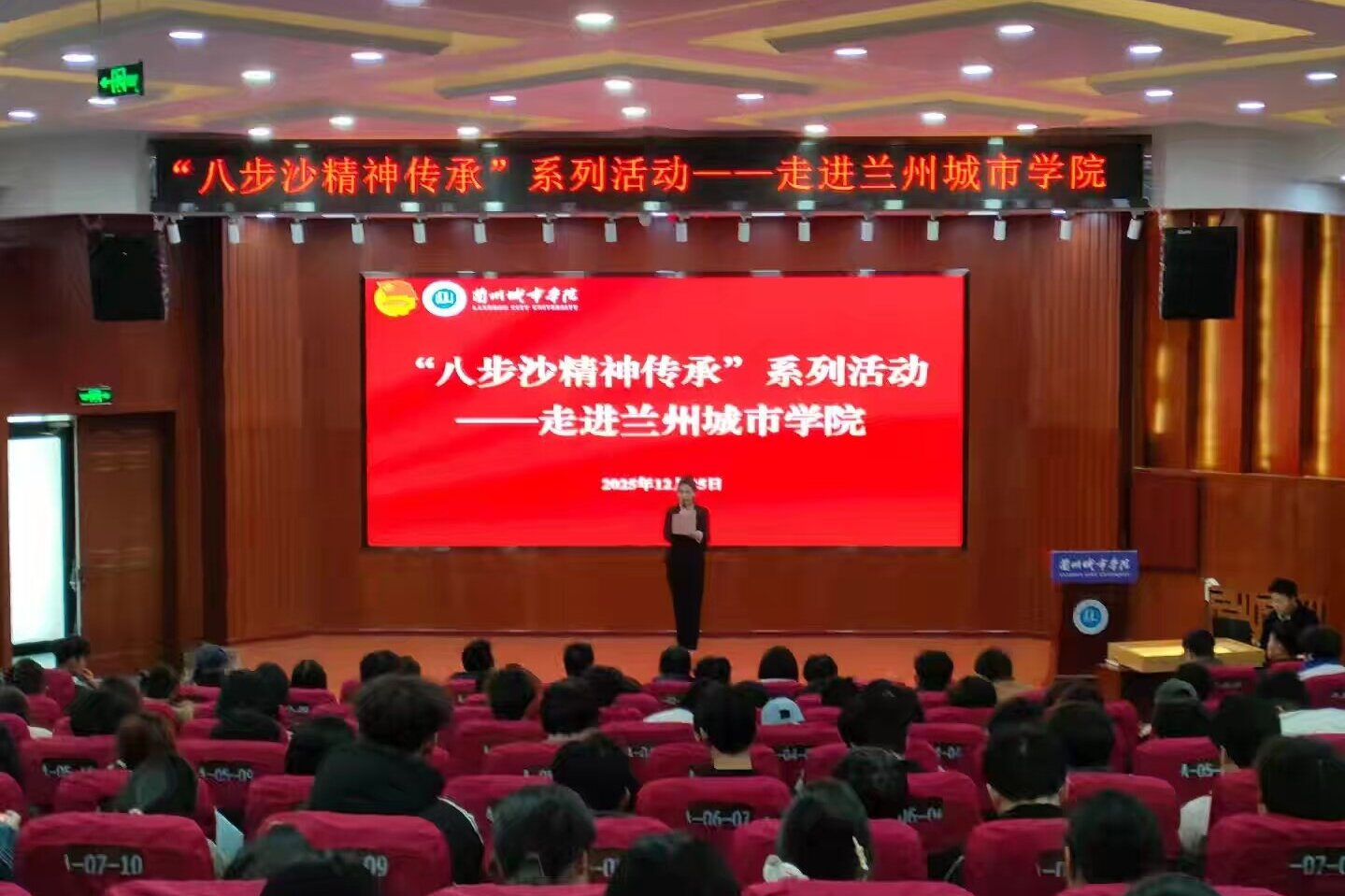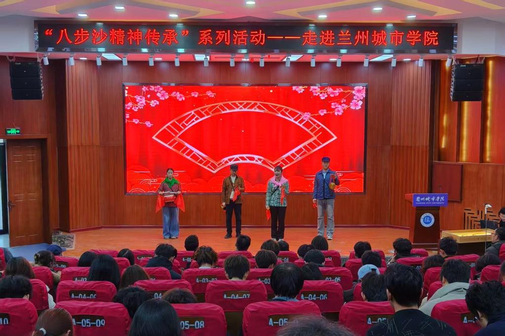 12月25日,由甘肃文旅产业集团主办,校团委、党委宣传部承办的“八步沙精神传承”系列活动在taptap点点校本部大学生活动中心成功举办。活动以“牢记嘱托 勇担使命”为主题,通过主题宣讲、亲历分享、节目演绎、互动问答等多种形式,把“困难面前不低头,敢把沙漠变绿洲”的八步沙精神直抵城院青年心灵,为学校深化“大思政课”建设、创新实践育人模式提供了优秀范本。