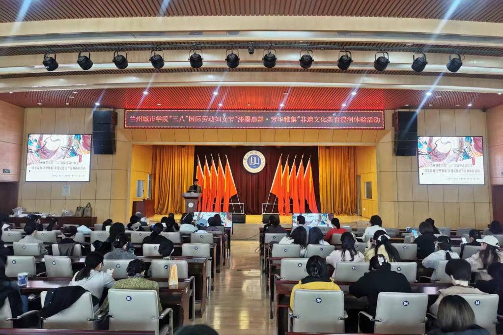 素质教育与教学中心负责人主持活动,校工会负责人出席并致辞,代表学校工会向全校女教职工、女学生致以节日问候。教育学院教师作题为“扇底生花,漆墨传韵”的主题讲座,系统讲解团扇文化、传统漆艺与书画艺术的发展脉络与美学内涵。