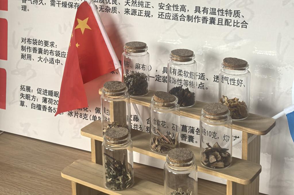 活动中,学生党员发挥先锋模范作用,讲解中医药非遗文化内涵与传承意义,分享非遗与科创融合的实践思路。在学生党员志愿者指导下,同学们辨识中药材、制作中药香囊、体验古法艾灸技艺,沉浸式感受中医药非遗魅力。