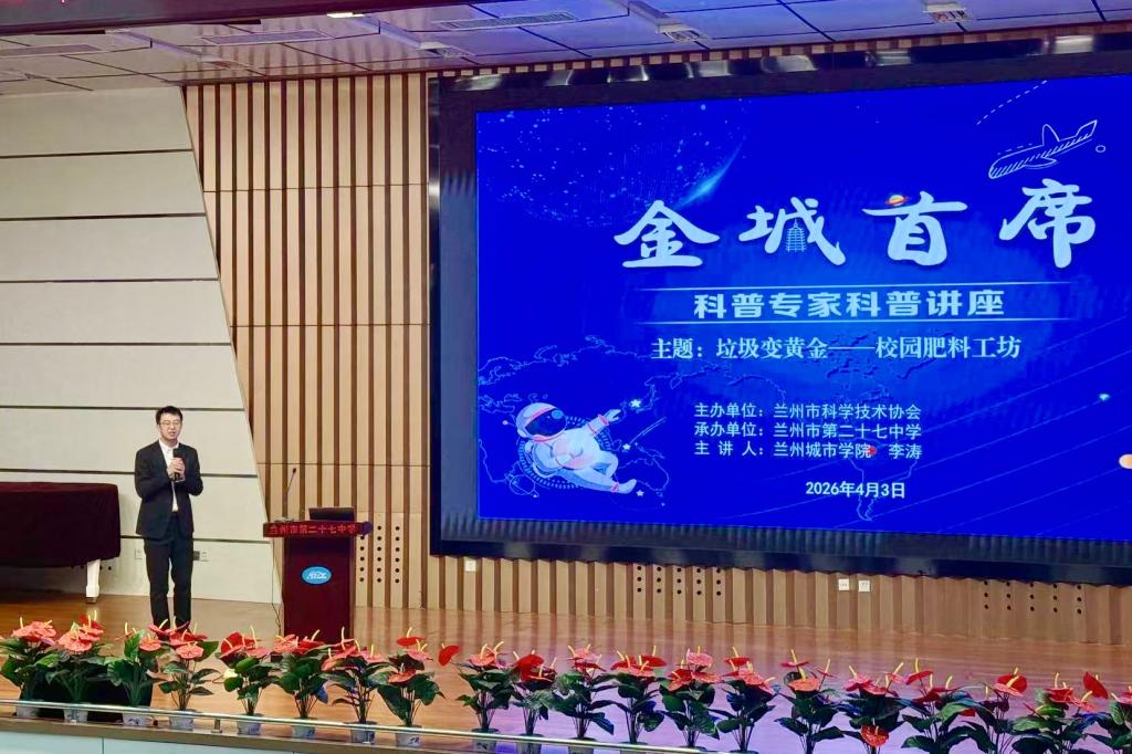 为普及绿色环保知识,引导学生关注生活中的化学问题,4月3日下午,化学工程学院在兰州市第二十七中学举办“垃圾变黄金——校园肥料工坊”主题科普讲座。学院相关教师担任主讲,围绕厨余垃圾、植物残体等废弃物科学转化为有机肥料的原理与方法进行讲解,帮助同学们直观了解“变废为宝”的科学过程,传递节约资源、保护环境的理念。