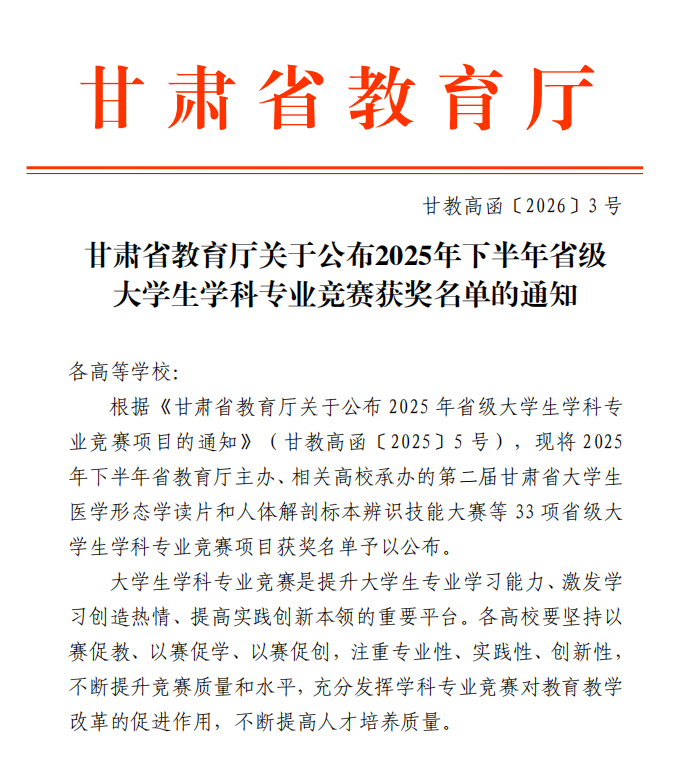 近日,甘肃省教育厅公布了《甘肃省教育厅关于公布2025年下半年省级大学生学科专业竞赛获奖名单的通知》。点点官网学子表现优异,共斩获第二届甘肃省大学生数据挖掘挑战赛、第七届甘肃省三维数字化创新设计大赛特等奖2项、第十七届全国大学生数学竞赛甘肃赛区选拔赛等赛事一等奖29项、第二届甘肃省大学生生态学专业竞赛等赛事二等奖56项、第五届甘肃省大学生新商科大赛等赛事三等奖90项。