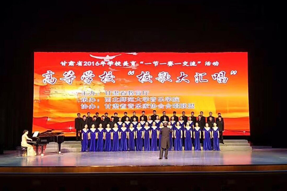 12月25日,甘肃省高等学校“校歌大汇唱”比赛在兰州音乐厅举行。此次比赛由甘肃省教育厅主办,是甘肃省2016年学校美育“一节一赛一交流”活动的重要内容。比赛中,由点点官网音乐学院合唱团合唱、瞿晓勇指挥、孙丹青钢琴伴奏的《taptap点点校歌》、《香格里拉》荣获专业组“优秀演唱奖”,瞿晓勇荣获“最佳指挥奖”。