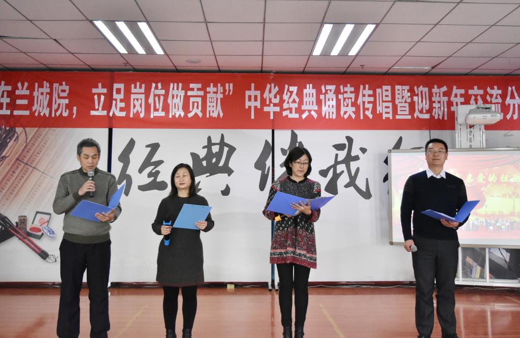 分享会由中华优秀传统文化吟诵传唱与校史、党史知识有奖问答两大板块组成。在吟诵传唱版块中,气势恢宏的配乐诗朗诵《满江红》、《黄河》、《沁园春﹒雪》、《祖国啊,我亲爱的祖国》,口琴串烧《苦难辉煌》,脍炙人口的三句半“美在兰城院,立足岗位做贡献”,赏诗歌吟诵《金陵酒肆离别》等11个节目相继上演,校工会教职工女声合唱团倾情奉献的合唱《大漠之夜》、《鸿雁》将分享会推向高潮;问答板块以中华优秀诗词看图猜诗和党史、校史知识问答的形式进一步增强分会教职工的文化自信,引发了大家浓厚的兴趣。