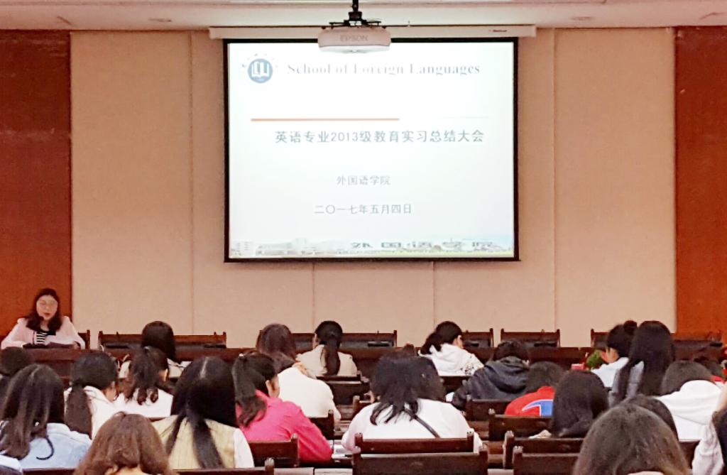 5月4日下午,外国语学院在培黎校区图书馆六楼报告厅召开2017届英语专业学生教育实习汇报总结大会。学院领导、实习指导教师和全体2017届英语专业学生共150余人参加会议。