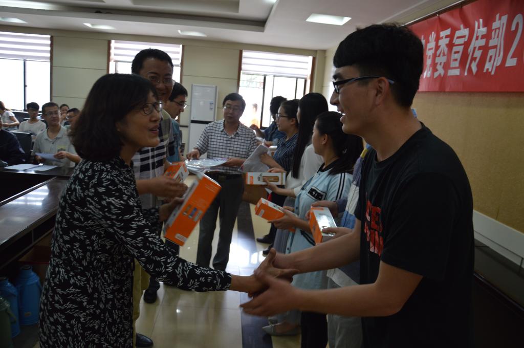 党委宣传部部长石虹、党委宣传部副部长周彦新向受表彰同学颁发了荣誉证书,并向与会毕业生赠送了纪念品。他们对在记者团辛勤工作、为学校新闻宣传工作做出贡献的同学们表示了诚挚感谢;祝福毕业生们在新的人生道路上一帆风顺、在未来的日子里幸福快乐,希望毕业生们能一如既往地关心母校的发展、关注记者团的发展;鼓励记者团全体成员向即将毕业的师哥师姐学习,以受表彰同学为榜样,在记者团这个大家庭中“努力干、一起干”,为更好地促进学校新闻宣传工作做出更大地贡献。