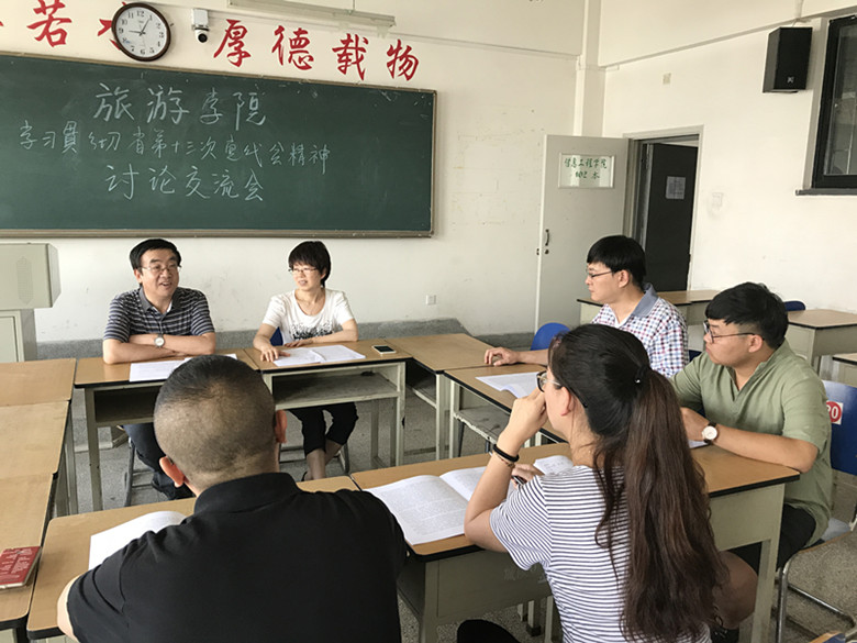 7月13日,按照学校党委安排,旅游学院学习贯彻省第十三次党代会精神交流座谈会在校本部综合楼4309召开,对省党代会精神的学习贯彻进行再动员、再部署、再推动、再落实。