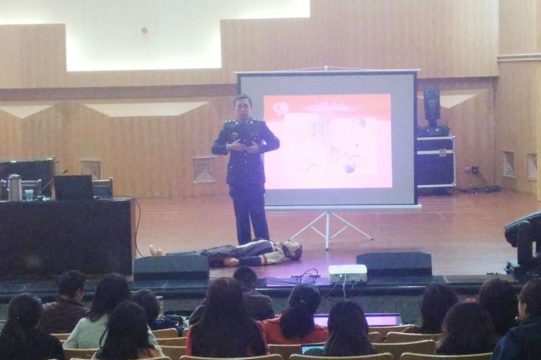 讲座中,马凌详细介绍了高血压、高血脂、冠心病的症状,从饮食、运动等方面给讲解了高血压、高血脂、冠心病的预防措施。随后,他使用人体模型示范讲解了简单的心脏复苏与急救方法,重点介绍了心肺复苏中最实用、最重要的方法——胸外心脏按压法,并指导教职工代表上台进行了实地演练。讲座系统地讲解心肺的心理结构和复苏法的操作要领,使全院师生了解掌握了一定的心肺复苏法的操作技能。