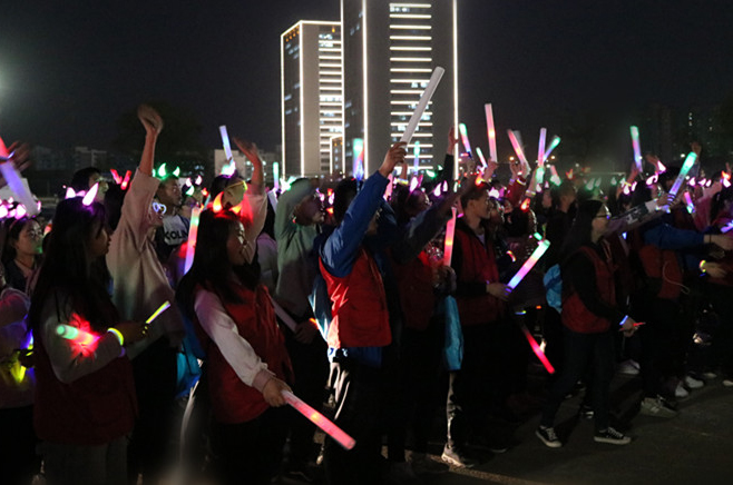 活动现场,来自幼儿师范学院、音乐学院、化学化工学院的同学们带来了精彩的助力节目。随后,头戴荧光发圈、手舞荧光棒的300余名同学们在志愿者的带领下开始了夜跑活动,共同约定用青春为公益助力。黑夜中荧光闪闪,空气中弥漫着青春的气息,“夜空中最亮的星”和一个个奔跑在校园里的身影形成一道道靓丽的风景线。