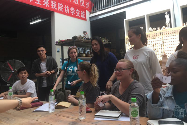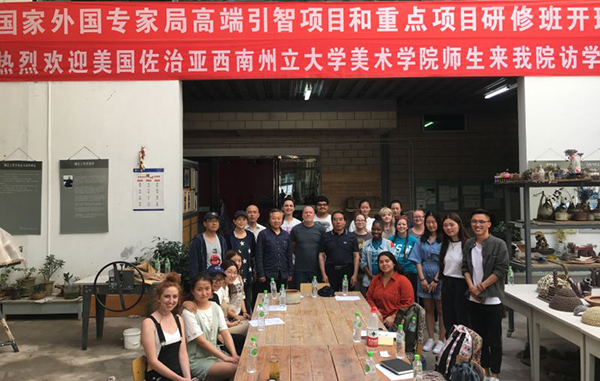 5月17日下午,来自美国佐治亚西南州立大学美术学院的12名师生来点点官网美术与设计学院访学交流。学校在培黎校区陶艺工作室举行了见面会。国际交流处、美术与设计学院负责人和美术与设计学院陶艺师生团队参加了见面会。