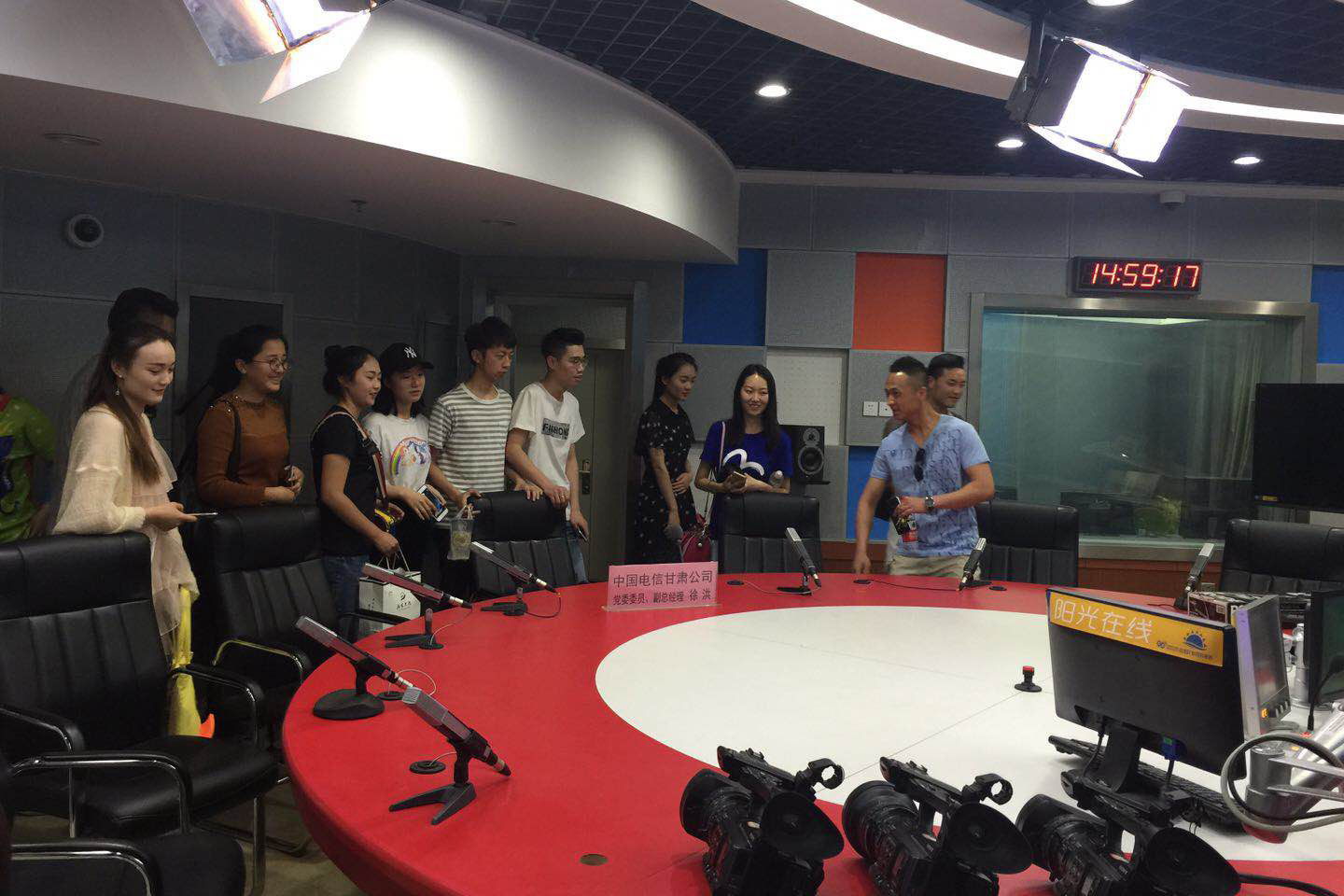 甘肃省广播电影电视总台各部门负责人带同学们先后参观了新媒体播控平台、广播直播间、广播视频直播室、400平米演播室和高清新闻直播演播室指挥中心等。各部门负责人都详细地给同学们介绍了各个区域的工作任务、流程及注意事项并于师生就相关媒体的运行情况进行了交流。