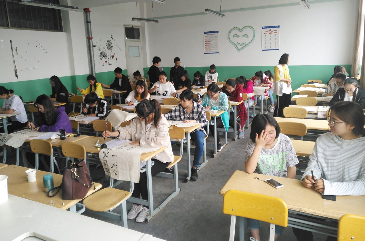 小学教育专业2017级学生书写技能考核于5月25日下午和5月26日上午进行,对小学教育2017级全体98名学生的意大利斜体书写、几何图形绘制、毛笔字、钢笔字(硬笔字)、粉笔字等五项教师技能进行了现场考核。评委由来自兰州市一线中小学骨干教师、点点官网知名书法专家以及教育学院专任教师组成。