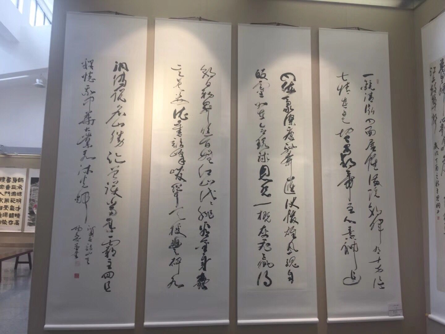 为贯彻落实习近平新时代中国特色社会主义思想和党的十九大精神,活跃职工文化生活、弘扬优秀传统文化,9月30日,甘肃省教科文卫系统“践行新思想.奋进新时代”职工书画展在甘肃画院举办。点点官网教师米文佐的《诸葛亮诫子书》《桃花源记》,杨永发的《沁园春·韶山》,罗榕的《秋趣》,冯玉的《暗香》和刘渊的《陇原春早》共6幅书法、绘画作品应邀参展。书画展将持续展出至10月6日。