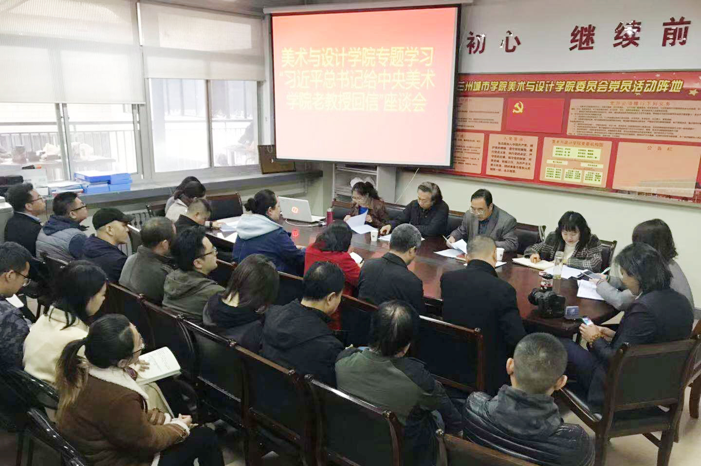 10月26日下午,美术与设计学院举办学习习近平总书记给中央美术学院老教授重要回信精神座谈会。学院全体教师参加座谈会。