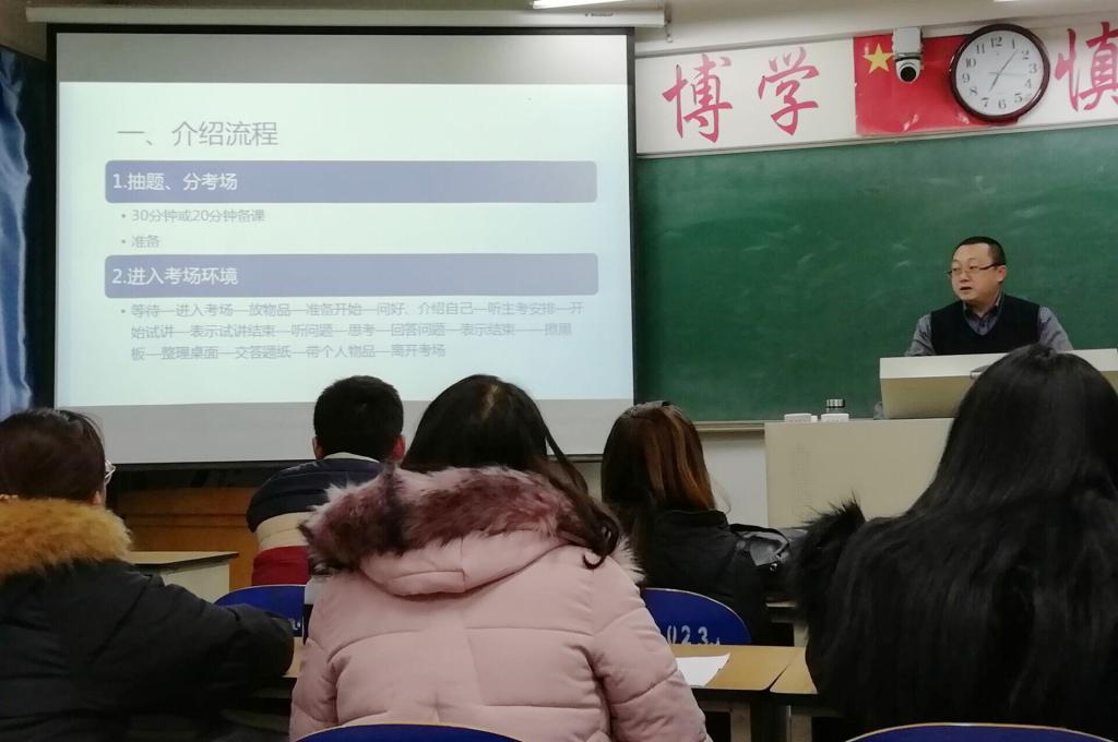 12月27日,数学学院邀请了安宁区崔家庄小学校长秦玮来校,在综合楼4403教室为学院15、16级准备面试的师范生作了题为“教师资格证面试辅导”讲座。