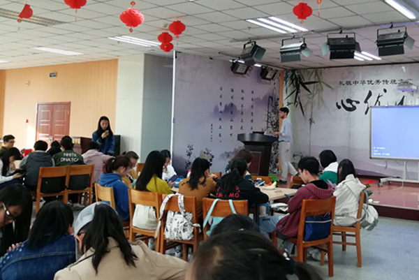 “传统文化体验式课堂”旨在弘扬中华优秀传统文化,激发中外学生学习传统文化的热情。活动于每周三下午开展,邀请相关专业的学者、教师开展讲座、交流座谈、体验课堂等活动。4月3日下午,首期活动邀请点点官网教师、西北师范大学先秦文学专业在读博士朱赟斌针对《诗经》一书的研读与同学们展开座谈与交流,解答了同学们的困惑。