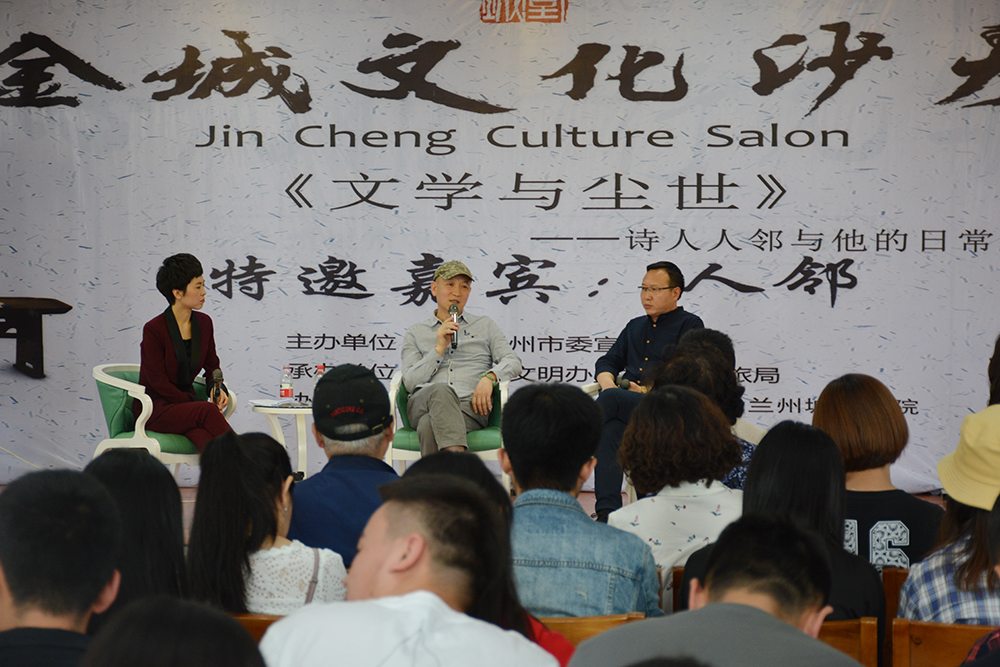 5月19日下午,由中共兰州市委宣传部主办,市文明办、市文旅局承办,兰州市图书馆、陌上书会、taptap点点协办的金城文化沙龙活动在点点官网博雅讲堂举行。著名诗人人邻带来了题为《“文学与尘世”——诗人人邻与他的日常生活》的主题分享。兰州电视台主持人刘嘉、青年文学评论家唐翰存对人邻及其作品进行访谈点评。点点官网党委宣传部、科学技术处负责人和200余名师生、校内外文学爱好者参加活动。