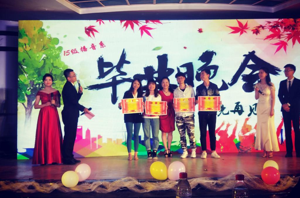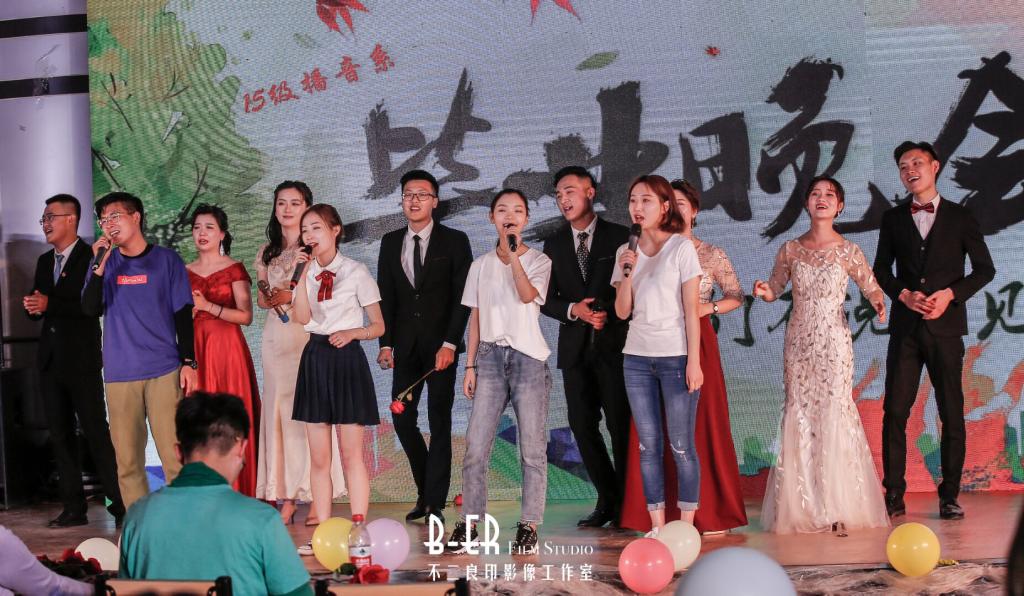 本次联欢会所有节目都由19届毕业生自编自导自演,内容丰富、富有创意。朗诵节目《流金岁月》和配音节目《致青春》展现了学生们的专业能力和风采;播音系系主任赵熙敏老师带领同学们进行了最后一次练声,勾起了同学们无数的回忆;通过视频,教师为毕业生送去了诚挚的祝福;晚会在大合唱《不说再见》中落下帷幕。