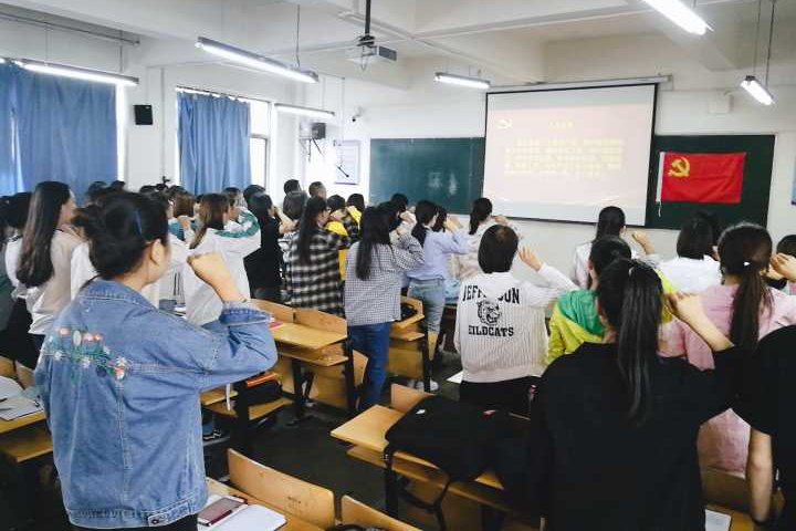 活动在雄壮的国歌声开始。工作人员宣读了《中共taptap点点教育学院委员会批准预备党员的通知》。随后,与会全体党员高举右拳、面向党旗,举行了庄严的新党员入党宣誓、其他党员重温入党誓词仪式。