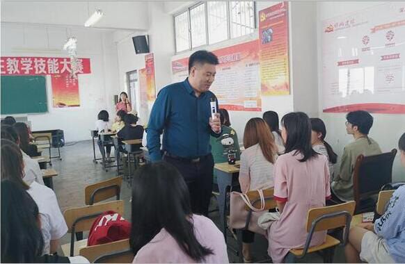 多维教育集团黄志华校长还以“引导式课堂初探”和“塑造魅力、提升品位——教师的形象与礼仪”为题,为学院师生上了一堂初中英语教学示范课。他从教学模式、教师礼仪和教学现场授课三个方面对同学们进行了系统指导。