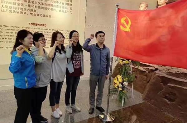 参观结束后,教师党员们面对党旗重温入党誓词,再一次接受党性的洗礼,更加坚定了不忘初心、争做“四有好老师”的理想信念,立志在未来的工作中,大力传承弘扬张一悟等革命先烈们的革命精神和民族品格,充分发挥共产党员的先锋模范带头作用,严于律己,履职尽责,做好本职工作,不忘初心,继续前进,以优异的工作成绩向党的伟大事业献礼。