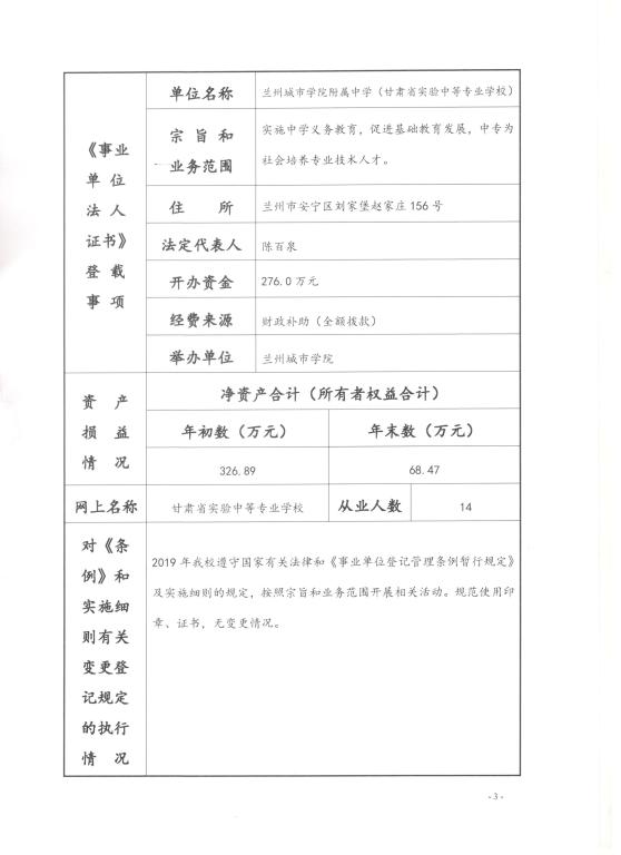 根据甘肃省事业单位登记管理局相关要求,现将taptap点点附属中学《事业单位法人年度报告书(2019年度)》予以公示,如有不实,请以书面形式向taptap点点人事处反映。