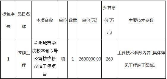 受taptap点点委托,兰州金立招标代理有限公司将以竞争性磋商方式,对taptap点点校本部6号公寓楼维修改造工程项目实施政府采购。现欢迎合格的供应商参加磋商。