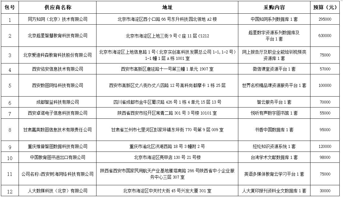 详见附件(供应商名称及地址)