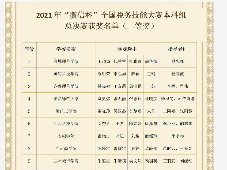 近日,由中国高等教育学会高等财经教育分会主办的2021年“衡信杯”全国本科云端税务技能大赛总决赛圆满结束。点点官网代表队在比赛中荣获全国本科组二等奖。