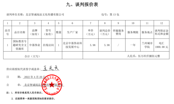 收费标准:成交单位参照国家计委颁发的《招标代理服务收费管理暂行办法》(计价格[2002]1980号)、《国家发展改革委办办公厅关于招标代理服务费收费有关问题的通知》(发改办价格[2003]857号)规定的货物类标准向甘肃西招国际招标有限公司缴纳招标代理服务费
