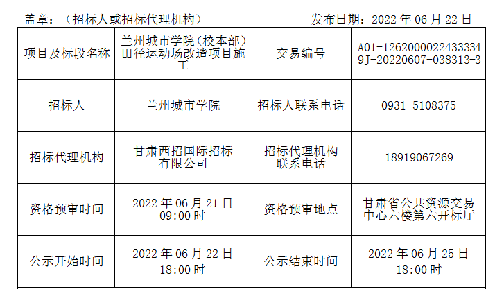 taptap点点(校本部)田径运动场改造项目施工资格预审结果公示