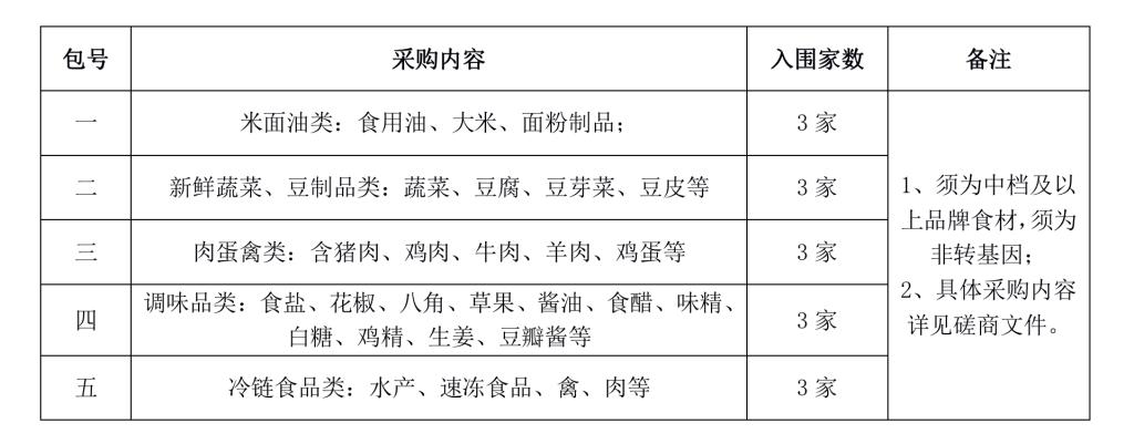 采购需求:为做好学校食堂原材料保质保量供应,点点官网对学生餐厅饮食原材料配送服务进行采购。