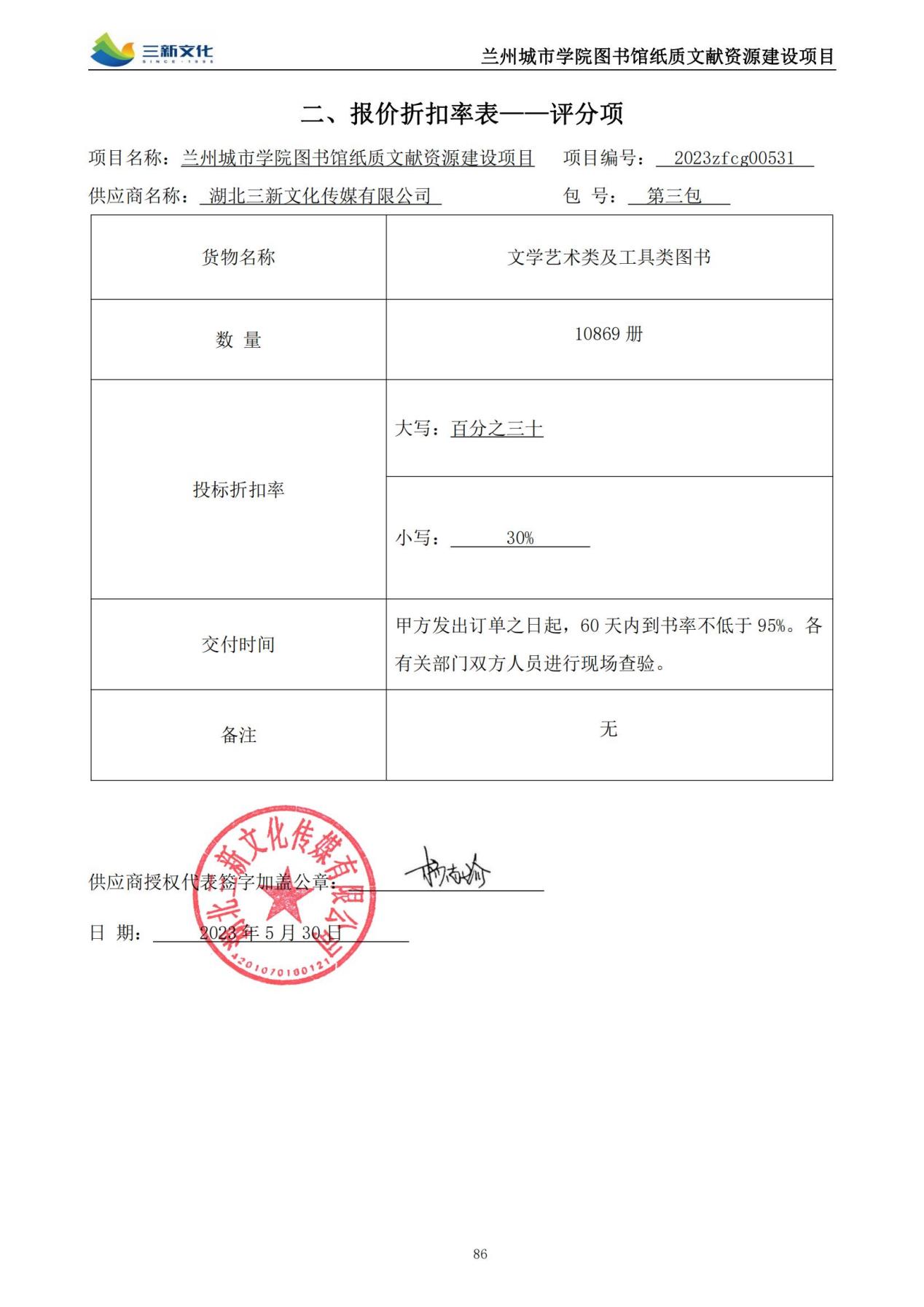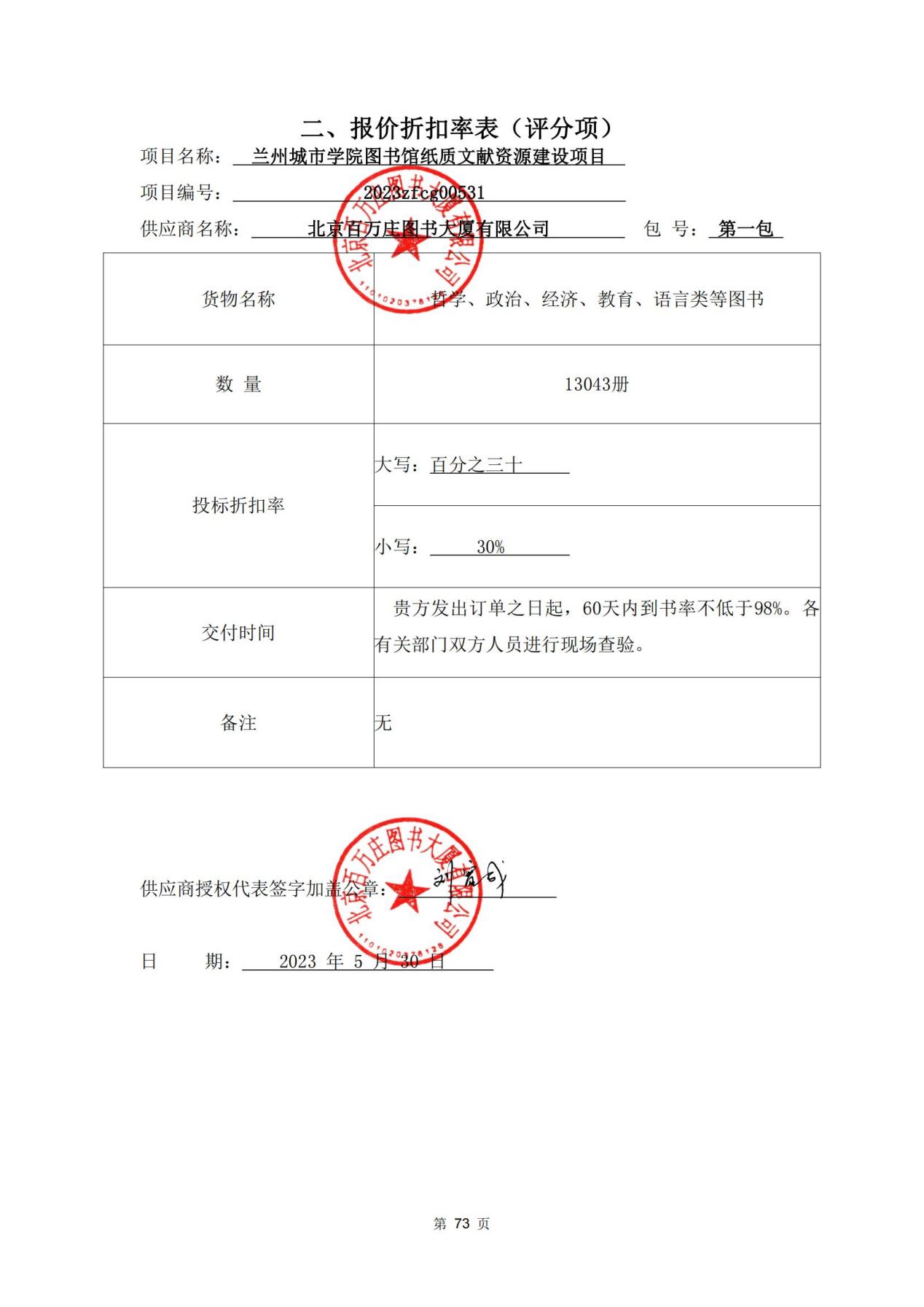 第一包:北京百万庄图书大厦有限公司,中标折扣率:30%;第二包:甘肃纸中城邦书业有限公司,中标折扣率:30%;第三包:湖北三新文化传媒有限公司,中标折扣率:30%;第四包:北京人天书店集团股份有限公司,中标折扣率:30%;第五包:兰州书立方文化传播有限公司,中标折扣率:30%。