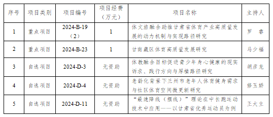 2024年甘肃省体育科研和决策咨询研究项目立项一览表
