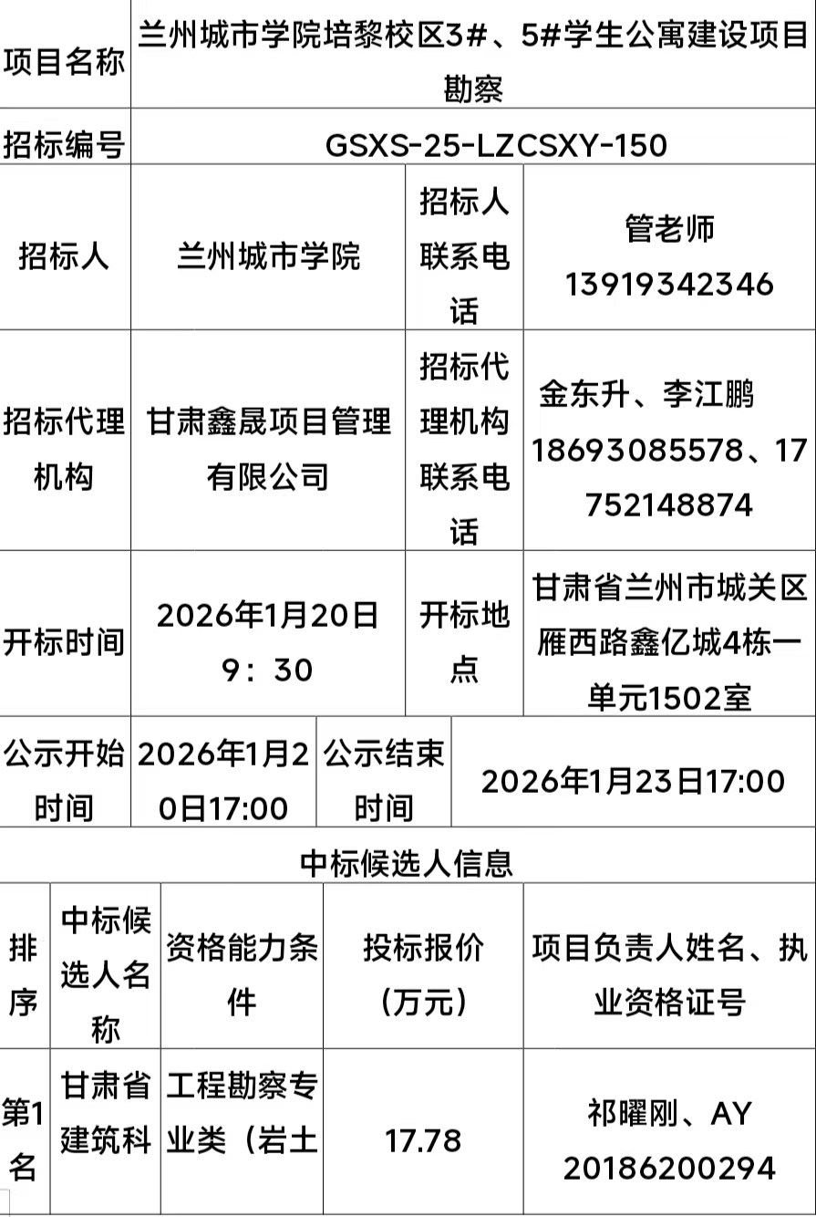 taptap点点培黎校区3#、5#学生公寓建设项目勘查中标候选人公示
