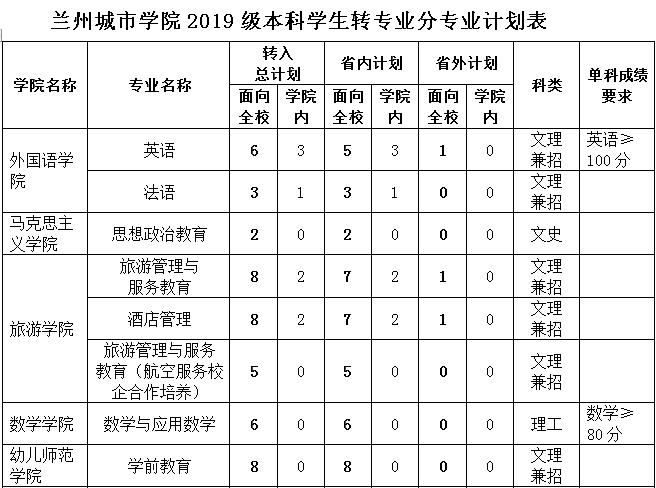 taptap点点2019级本科学生转专业分专业计划表