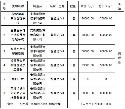 成交供应商:安徽威斯特信息科技有限公司