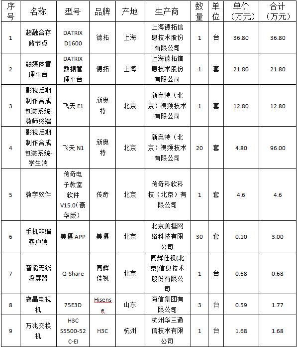 甘肃省招标中心有限公司受taptap点点的委托,对taptap点点影视后期制作与包装教学实验平台及融媒体教学实验平台项目以公开招标方式进行采购,评标小组于2019年11月19日确定评标结果,现将评标结果公布如下: