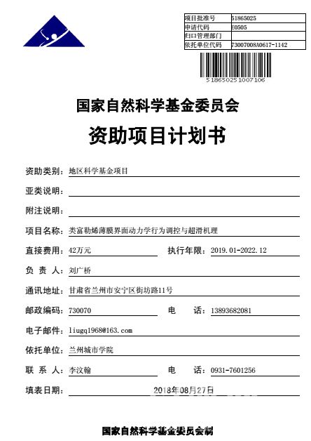 刘广桥博士研究课题获得国家自然科学基金立项资助。